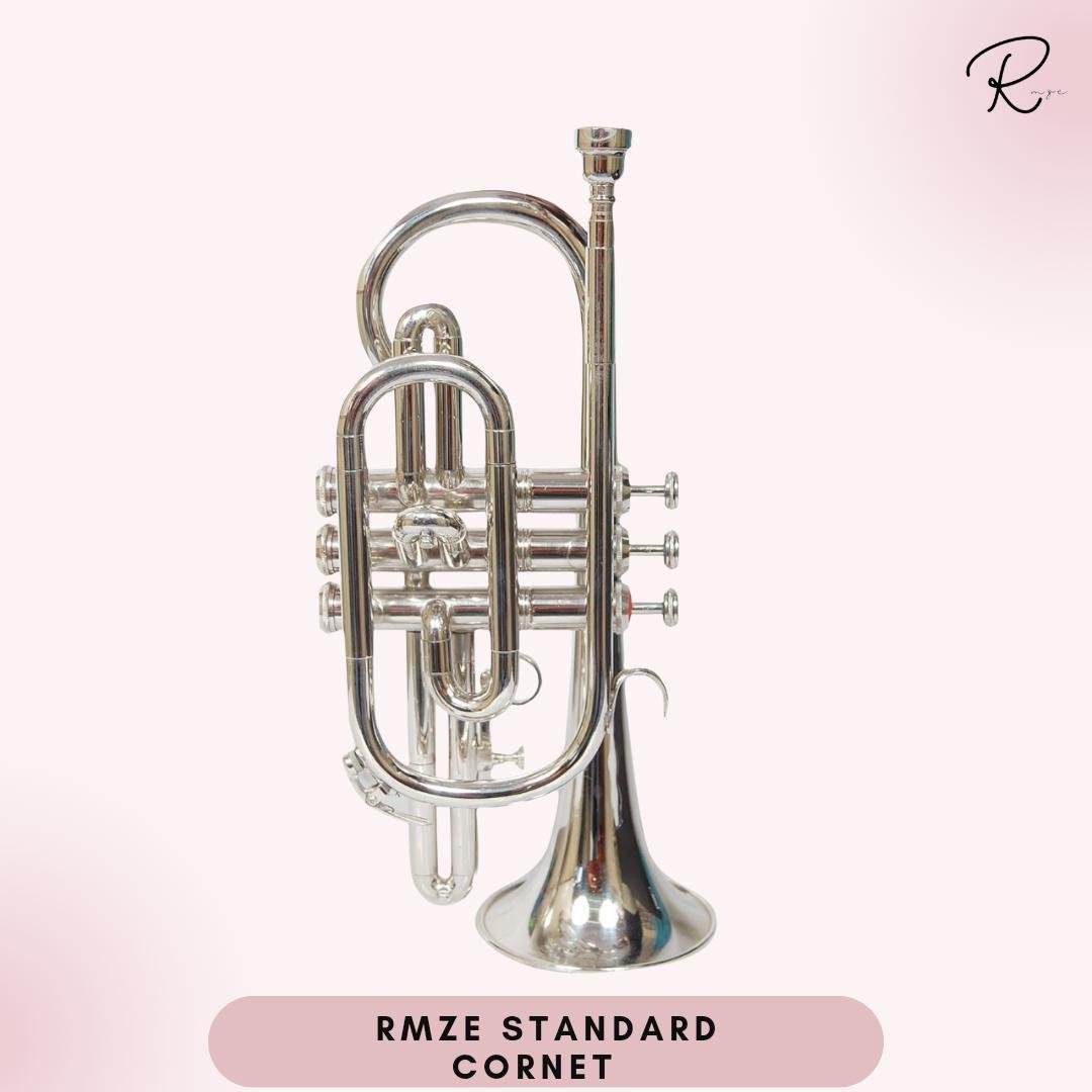 The RMZE Standard Cornet is a high-quality brass instrument designed for band performances, school bands, and professional musicians. Crafted with durable brass construction and a shiny silver finish, this cornet delivers a warm, rich tone with smooth response and excellent projection.