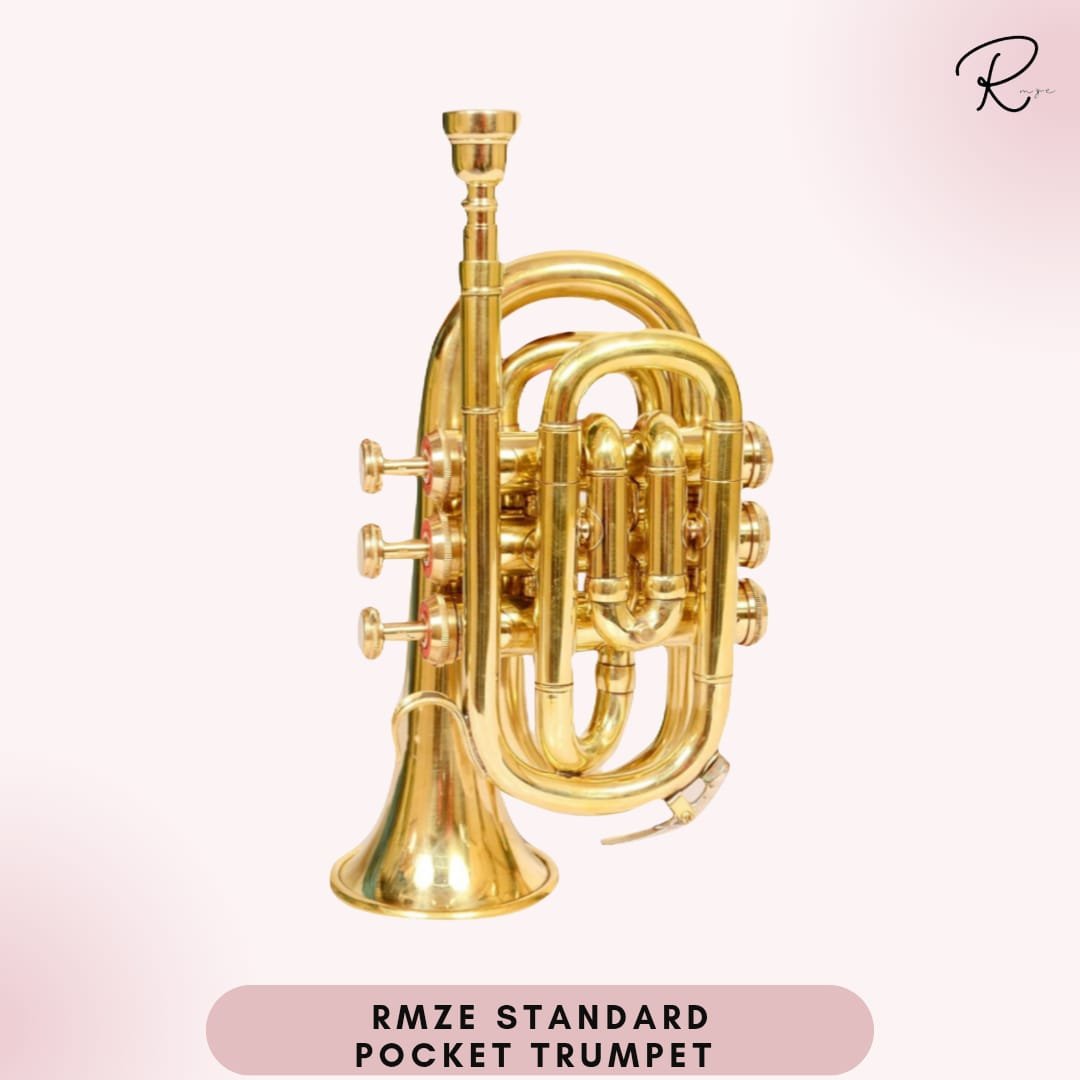 Rmze Standard Gold Pocket Trumpet Set including Hardcase, Mouthpiece, Value Oil, Gloves – Musical Instruments